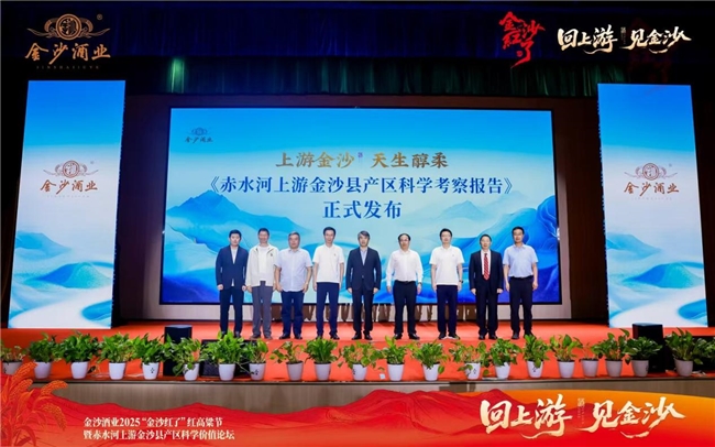 本届“金沙红了”高粱节上,金沙酒业联合好酒地理局举办的“上游金沙 天生醇柔”赤水河上游金沙县产区科学价值论坛也顺利落下帷幕,行业专家与学者智库在这里展开了一场关于产区风土的深度对话,正式发布了《赤水河上游金沙县产区科学考察报告》。该报告由好酒地理局联合江南大学、北京大学、中科院等权威机构专家共同完成,从水系、生态、原粮、工艺、科创、文化六大维度,系统论证了金沙县产区作为赤水河上游核心产区的稀缺性与差异性,为金沙上游战略提供了科学背书和理论支撑,打通了“自然禀赋—工艺特色—产品风格—消费认知”的价值链条。