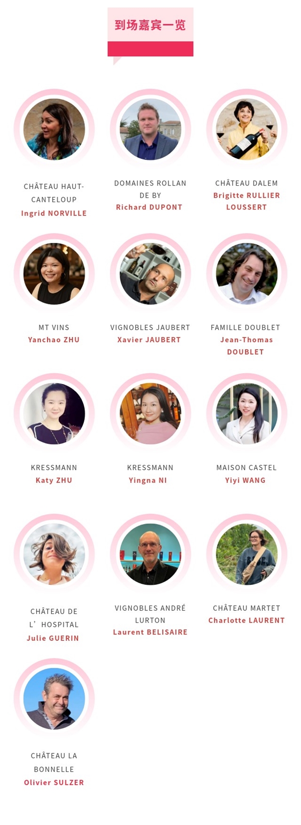来自波尔多的12位产区代表将为您呈现六大核心产区的风土奥秘。他们将分享产区故事、酿酒智慧与前沿趋势。